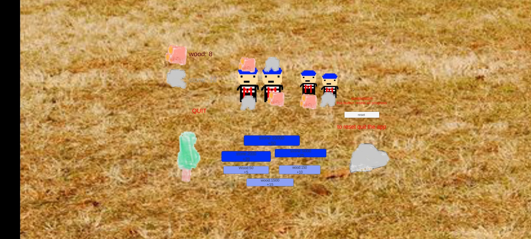 Klicke auf Baum und Stein, um etwas Holz zu bekommen und viel Spaß zu haben!