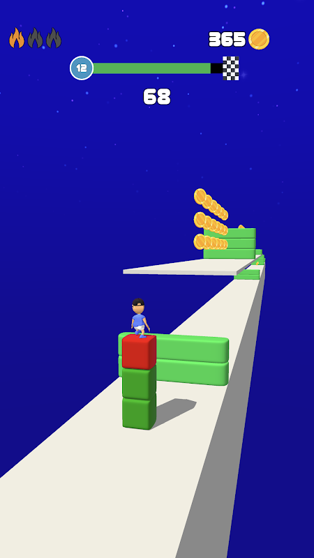 Tippe, um Blöcke zu stapeln und über Barrieren zu fahren. Passiere jede Barriere nur mit dem roten Block, um einen Bonus für die perfekte Punktzahl zu erhalten.