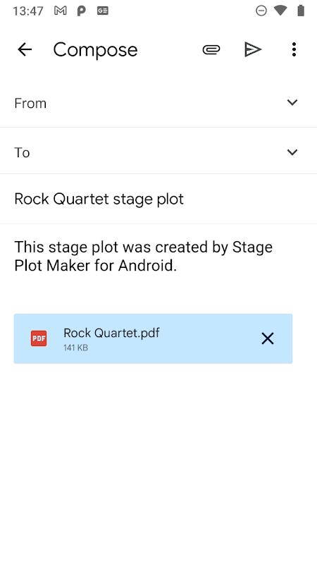 Mit Stage Plot Maker können Sie klare, lesbare Bühnenplots erstellen, um einem Tontechniker die technischen Anforderungen Ihrer Band zu vermitteln. Sie können eine Sammlung von Bühnenplänen für verschiedene Arten von Auftritten erstellen und diese dann direkt von Ihrem Mobilgerät aus ausdrucken oder per E-Mail versenden.