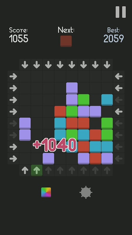 Das Spielfeld ist mit Pfeiltasten umgeben. Wenn du auf einen davon tippst, schießt er den Farbblock vorwärts. Sei vorsichtig, du kannst die Pfeiltaste blockieren, wenn der Block davor stoppt!