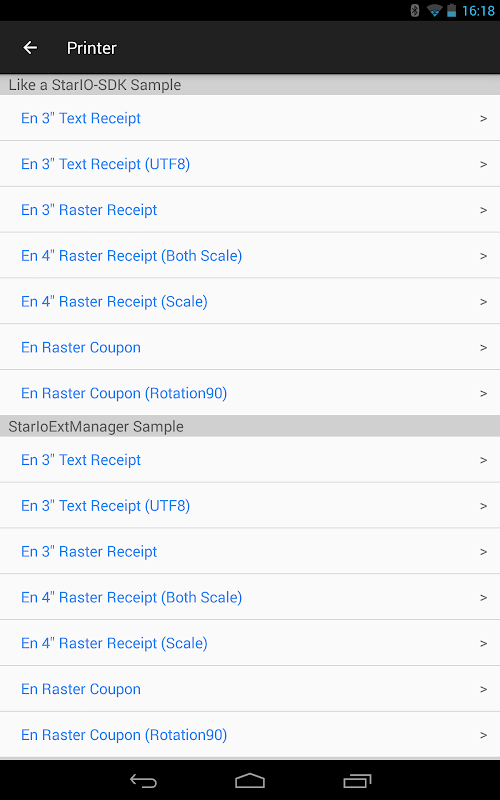 Das StarPRNT-SDK-Beispiel ist eine vorkompilierte Beispiel-App, die aus dem StarPRNT-SDK erstellt wurde.
