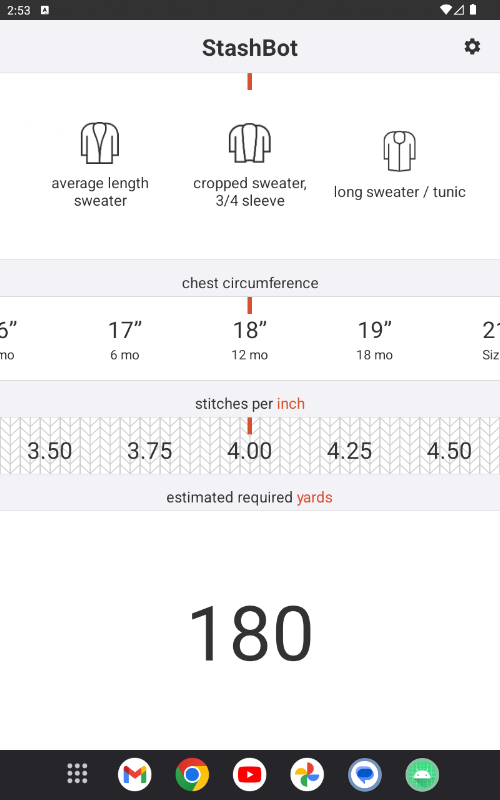 Easily calculate how much yarn you need for any knitting project. Just input your pattern details and StashBot does the rest!