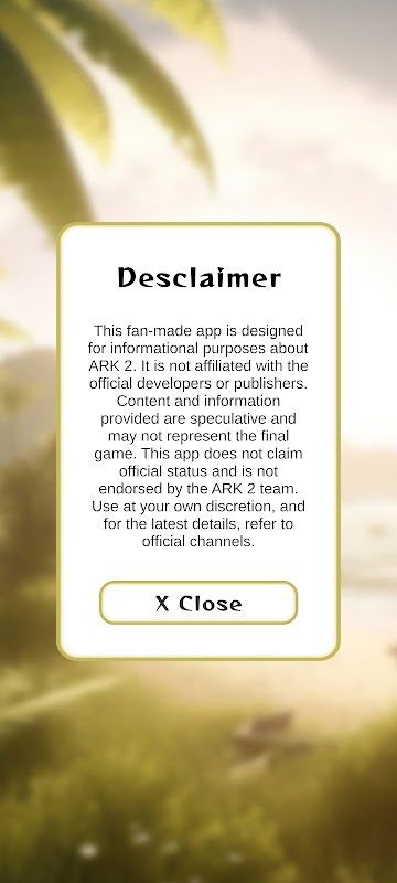Diese App ist ein von Fans erstellter Leitfaden für ARK 2 und steht in keiner Verbindung zu Studio Wildcard. Alle spielbezogenen Inhalte, Namen, Bilder und Logos sind Eigentum ihrer jeweiligen Eigentümer. Dieser Leitfaden wurde von Enthusiasten erstellt, um das Spielerlebnis zu verbessern und Informationen bereitzustellen. Jegliche Ähnlichkeit mit offiziellen Materialien ist rein zufällig. Die neuesten und genauesten Informationen finden Sie in den offiziellen ARK 2-Quellen.