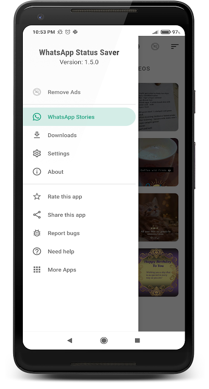 2- Der Name „WhatsApp“ unterliegt dem Urheberrecht von WhatsApp, Inc. WhatsApp Story Saver ist in keiner Weise mit WhatsApp, Inc. verbunden, gesponsert oder unterstützt. Wenn Sie feststellen, dass Inhalte in unserer App Urheberrechte verletzen, informieren Sie uns bitte, damit wir diesen Inhalt entfernen.