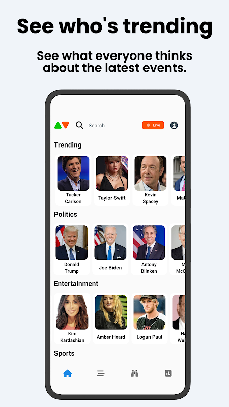 • Tägliche Abstimmungsmöglichkeiten: Äußern Sie täglich Ihre Meinung, während sich Ihre Perspektive weiterentwickelt. Bleiben Sie auf dem Laufenden über die aktuelle öffentliche Meinung zu den Persönlichkeiten, die unsere Welt prägen.