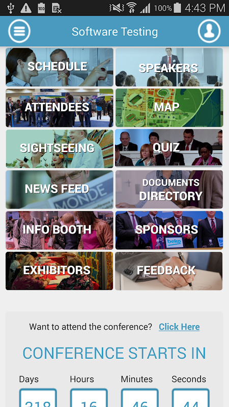 Software Testing Conference App is an android application that contains all the details about the conference.The application is a replacement of the paper brochures.