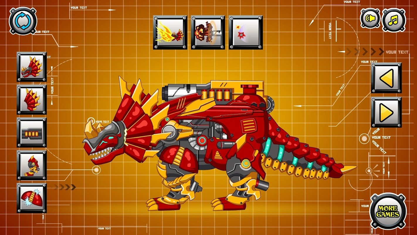 Assemble the parts are scattered , Try assembling a large and powerful mechanical Triceratops. After the assembly, You can use a variety of techniques.