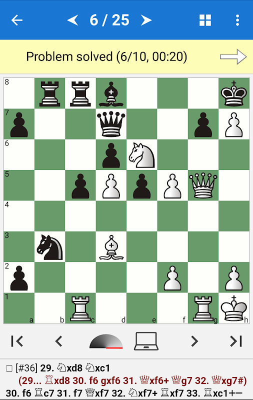 ♔ Jede Stellung einer Aufgabe kann gegen den Computer gespielt werden