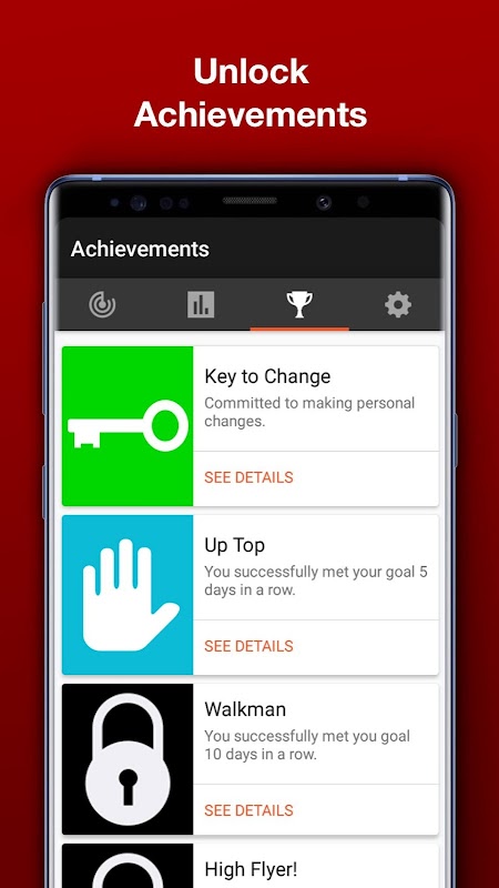 • Earn achievement awards for walking your recommended daily number of steps