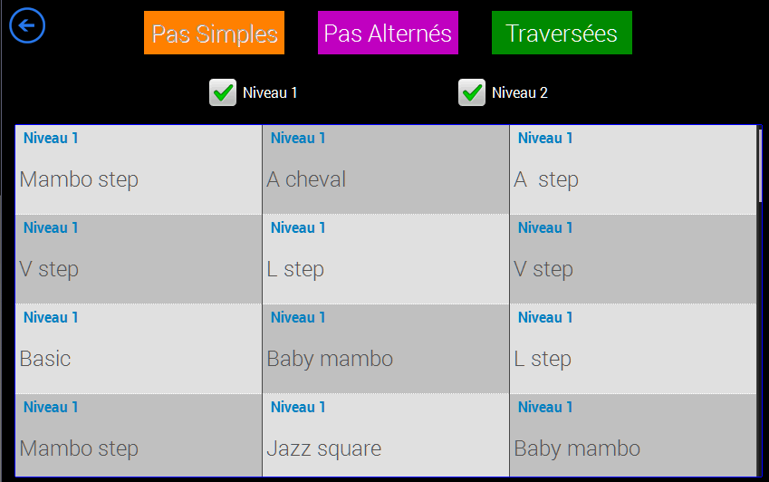 Mit StepEPS können die Schüler ihre Choreografie über eine Bibliothek von Step Steps zusammenstellen, auf die verwiesen wird und die als kurze Videos dargestellt werden.