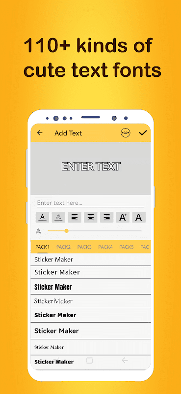 110+ kinds of cute text fonts, editable colors, stroke effects of various colors and widths can be set, you can use your text to create unlimited exquisite text sticker packs.