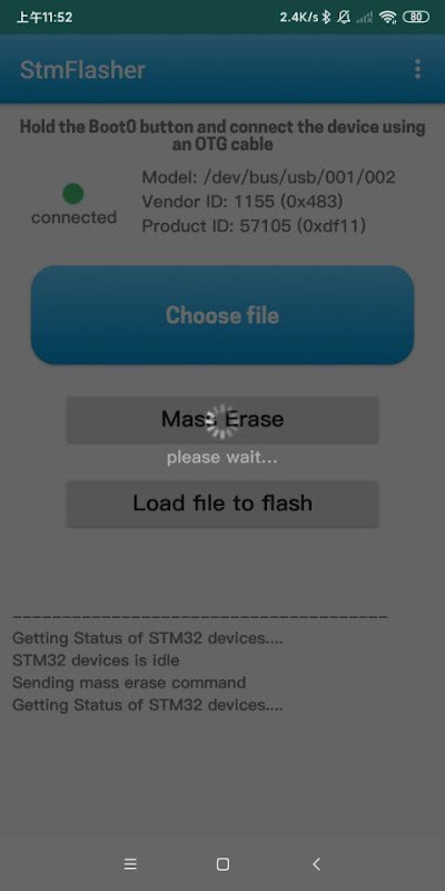 2.Hold the Boot0 button and connect the device using an OTG cable.