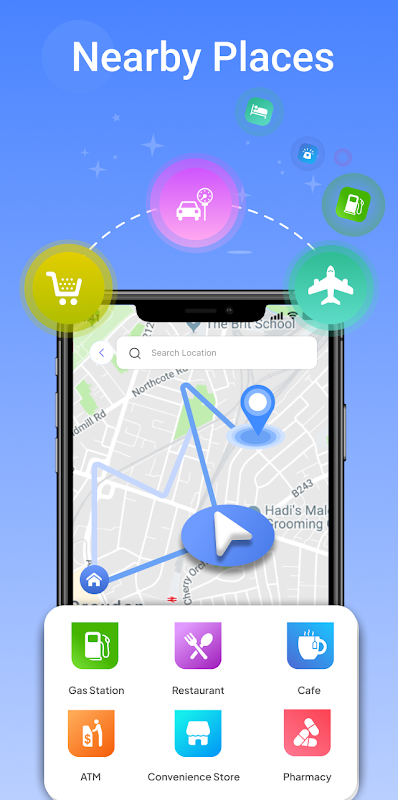 Street View - GPS & Navigation ist eine App für Reisende, Touristen und Abenteurer, die Abenteuer mögen und sie zur Reisenavigation verwenden können. Live Street View bietet eine GPS-Karte, Navigation und Wegbeschreibungen, sodass Sie ganz einfach nach Offline-Routen suchen, den genauen Weg finden und die kürzesten Routen zeichnen können. Mit der Street View GPS-Karte können Sie bei einer Internetverbindung auch öffentliche Orte in der Nähe lokalisieren. Darüber hinaus können Sie mit der GPS-Karten-Routenspeicherfunktion Ihre Routen für die zukünftige Verwendung speichern und so jedes Mal ein nahtloses Reiseerlebnis gewährleisten.
