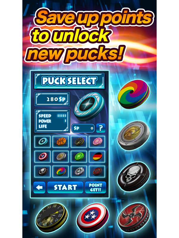Holen Sie sich SP, indem Sie den Endlos-Modus oder den Mission-Modus spielen, um die neuen Pucks zu kaufen!