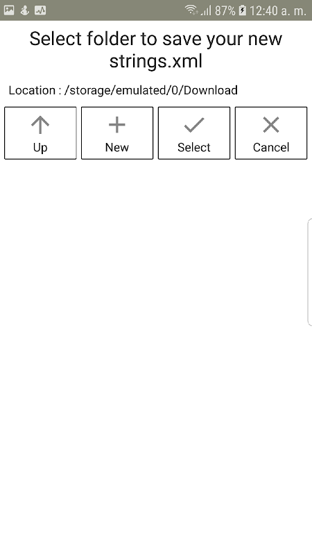 Grundsätzlich senden Sie Ihre Datei strings.xml an Ihr Telefon, öffnen sie und filtern sie mithilfe dieser App. Kopieren Sie dann das Ergebnis in Ihren geliebten Übersetzer. Fügen Sie das übersetzte Ergebnis erneut in die App ein, um die gesamte ursprüngliche Struktur der Datei wiederherzustellen.