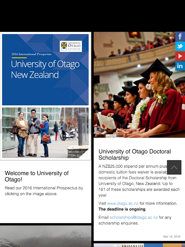 • Links to the University of Otago's International social media channels (Facebook, Twitter, YouTube & more)