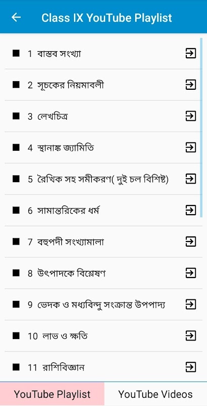 Videos will be played in youtube app. Chapterwise youtube playlist link are available.