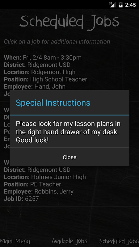 • Sehen Sie Ihre Offene Stellen, geplante Aufträge, Auftragsdetails, & Teacher Notizen mit einem Klick
