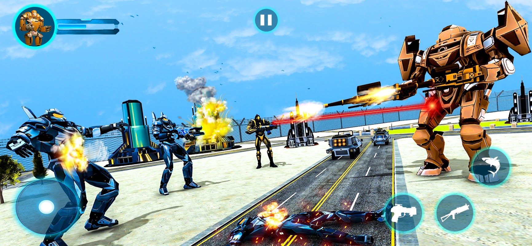 Treten Sie als wütender Hai-Helden-Polizei-Roboter-Krieger in das militärische Kriegsgebiet eines U-Boot-Erkundungsroboter-Kampfspiels ein, um sich in Roboter-Hai-Kriegs-Roboter-Krieger und transformierende Robotik zu verwandeln. Sie müssen tauchen, um medizinische Hilfe für den durch U-Boot-Raketenangriffe verletzten Taucher zu holen. Besiege die futuristischen Roboter, die gegen außerirdische Kräfte kämpfen und den Frieden der modernen Stadt der Roboter-Aliens zerstören. Tritt von Angesicht zu Angesicht gegen die Hai-Roboter im Seekrieg an und transformiere Monster auf dem Gelände der Roboterstadt. Dive Submarine Shark Robot Battle bringt eine Revolution in den Mech-Kriegsspielen des Tauch-3D-Spiels. Spielen Sie Hai-Spiele als Taucher-RPG-Monster-Shooter-Kämpfer und regieren Sie Marine-Kriegsschiff-Spielwasser-Taucher. Knockdown the wild animal robots dive, die in Aktion sind, um unschuldigen Tauchern in diesem Tauchroboter-Hai-Königsspiel 3d Schaden zuzufügen.