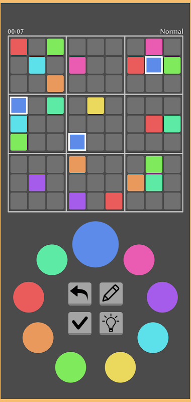 - Verwenden Sie die Bleistiftfunktion, um mögliche Farben in jeder Sudoku-Zelle zu markieren.