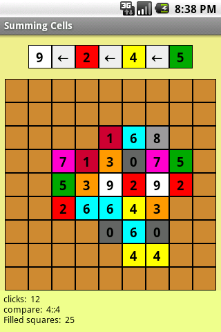 Place current numbered tile in an open spot. If the singles digit of the surrounding squares' sum matches the played tile, all adjacent tiles are removed.