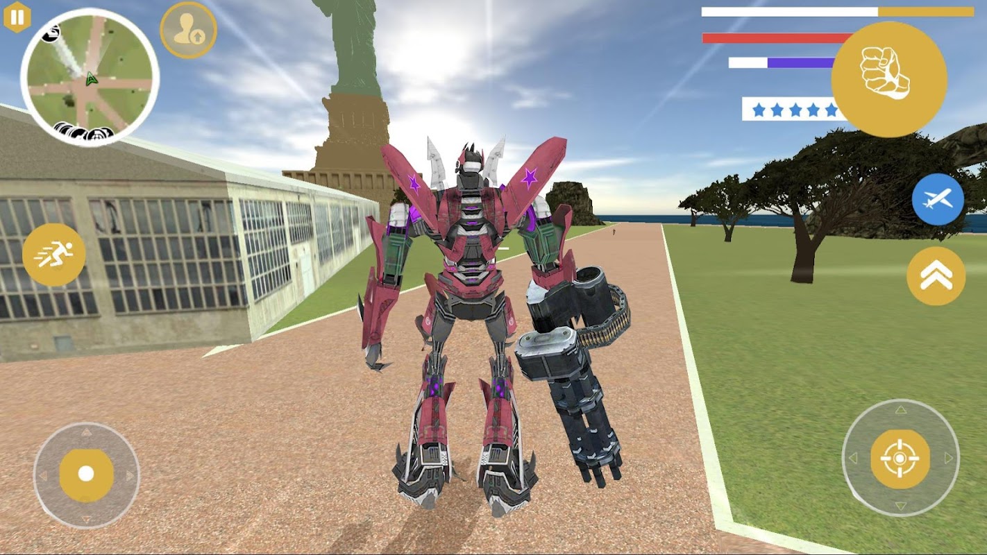 Transform supercar into futuristic car robot games to destroy enemy mech warriors in robot shooting games. Upgrade your advanced weapons to increase combat strength, futuristic car speed, and durability of your US police flying robot car simulator. Prove yourself as an ultimate US police war robot hero and use different strategies & tactics to emerge victorious in robot car simulator. Sense something more from simple police car games of robot shooting games and challenge this futuristic car battle in new style withholding all features of robo car games in this flying car robot games.