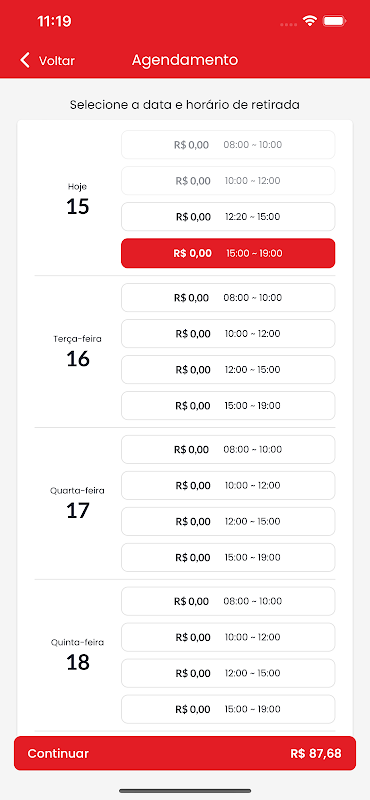 4 - Wählen Sie die Liefer- oder Abholzeit.