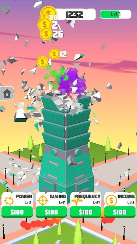 Crush buildings, upgrade weapons, earn coins in this epic arcade game!