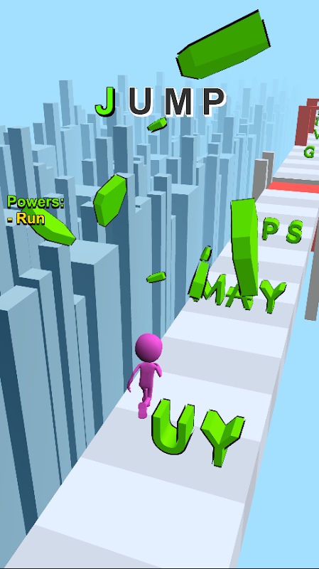 Play a runner in which you need to collect words from letters and bypass various obstacles. Each collected word gives you a special bonus: run, jump, sprint, fly, swim and others.
