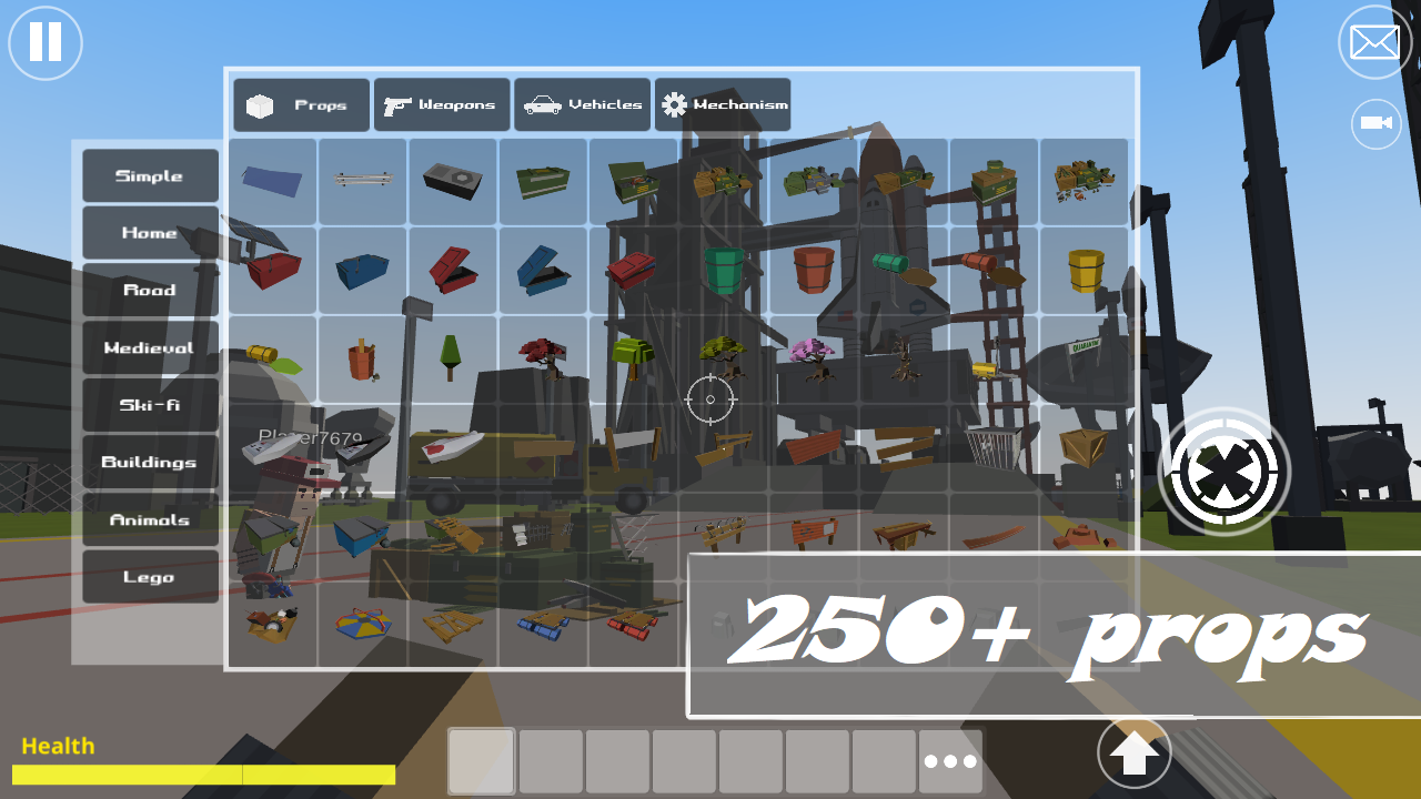 Das Spiel bietet zahlreiche Objekte für deine Gebäude. Es gibt auch viele Fahrzeuge und Waffen.