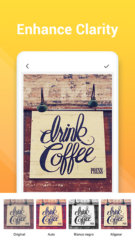 More filter options: color, clear, grayscale, sharpening, black and white.