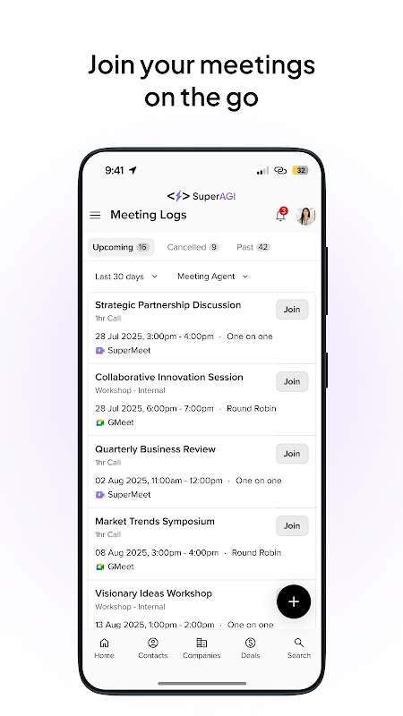 Mit der mobilen SuperAGI-App können Sie Ihr KI-gestütztes GTM von unterwegs verwalten.