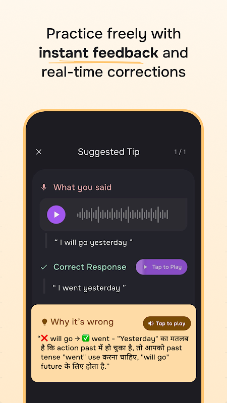 Englisch lernen wird einfacher, wenn jede Erklärung an Ihre Muttersprache anknüpft. Supernova AI vermittelt Wissen durch einfache Übersetzungen, klare Beispiele und die Unterstützung regionaler Sprachen – darunter die Möglichkeit, Englisch auf Hindi, Telugu usw. zu lernen – sodass Lernende Konzepte schneller erfassen. Dies erleichtert das Lernen für alle, die geführte Übungen in ihrer Muttersprache bevorzugen.