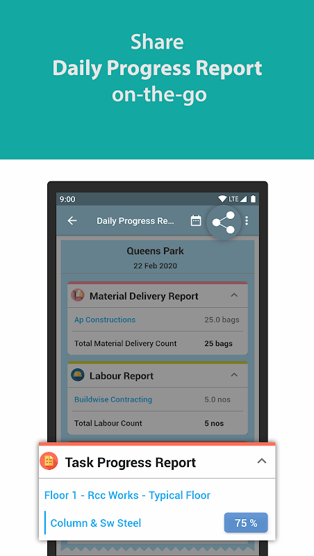 Mit unserer einfach zu bedienenden mobilen App erhalten Sie digitalisierte Daten von Ihren Bauleitern. Wählen Sie einfach die Aktivitätsdetails aus und senden Sie den Bericht.