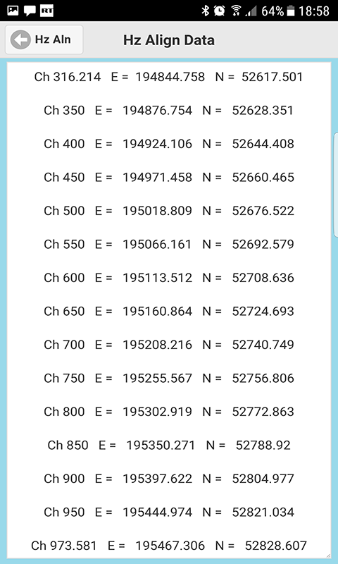 10) Hz Gerade ausrichten Mit der App "Gerade ausrichten" können Sie eine Reihe von Koordinaten relativ zu "Verkettung" und "Versatz" entlang einer geraden Linie berechnen.