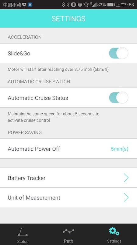 Von Roller Neulingen Allzeit-Enthusiasten, wird die App können Sie Ihre Fahrerlebnis, wann immer Sie zuzuschneiden mögen! Halten Sie ein Auge auf die aktuelle Geschwindigkeit und Batterieleistung mit nur einem Blick in der App. Und nachdem Sie Pfade eine Weile waren prall und hielten eine Pause zu machen, können Sie Ihre durchschnittliche Geschwindigkeit überprüfen!
