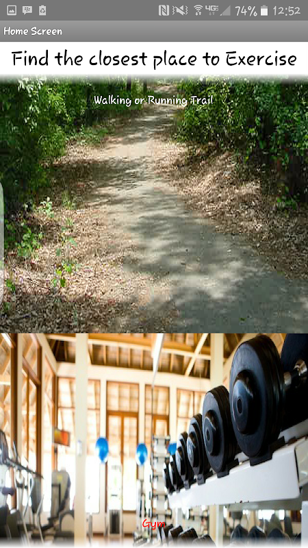Find the best places to Exercise. With Applied Technologies new app, Sweat Here, with a click of a button, you can find out where you can go running, lift weights, or go after or before your exercise. Just simply press the button of what you want to do, and the app will launch Google Maps, find your location, and tell you where to go ! Just make sure to have Location enabled in your settings, and your ready to go !