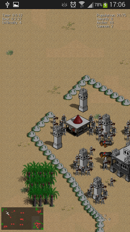 In dieser epischen Schlacht wirst du versuchen, deine Basis gegen die feindliche Armee zu verteidigen, und wenn du stark genug geworden bist, wirst du versuchen, die feindliche Basis mit deinen Kanonen zu zerstören, die von deinem Schwertkämpfer und deinen Bogenschützen unterstützt werden. Deine Soldaten sammeln im Kampf Erfahrung und werden mächtiger.
