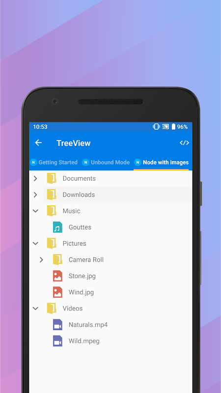 TreeView: ist ein datenorientiertes Steuerelement, das Daten in einer hierarchischen Struktur mit expandierenden und reduzierenden Knoten anzeigt.