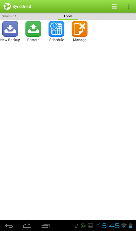 * Restore backups from SD card or Dropbox account.