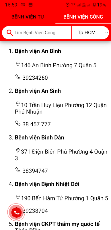 Chỉ cần nhấn vào ô tìm kiếm gõ chữ là hiển thị các cơ sở y tế với ký tự gần đúng như ô tìm kiếm.