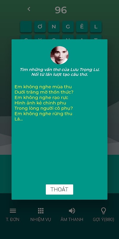 Tìm từ Đọc thơ là trò chơi xếp chữ nối từ - tạo lại những áng thơ bất hủ của các thi nhân Việt Nam.