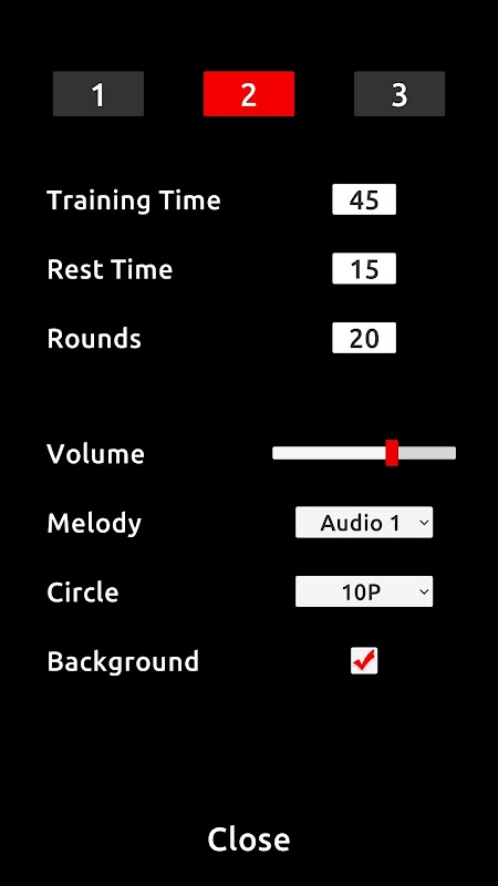 Tabata Timer mit dunklem Thema. Optimiert für OLED- und LED-Anzeigen.