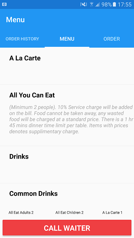 Tischbestell-App zum Durchsuchen von Menüs, Essen / Getränke bestellen.