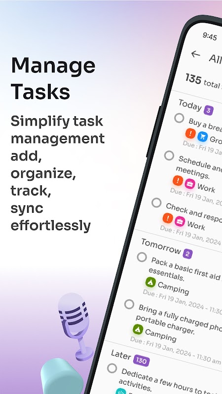 Wir haben einen reibungslosen, intuitiven Prozess zum Erstellen und Verwalten von Aufgaben entwickelt. Mit nur wenigen Fingertipps können Sie Ihre Aufgaben in anpassbare Kategorien wie „Familie“, „Arbeit“ oder „Camping“ einteilen und so Ihr Leben organisiert und übersichtlich halten.