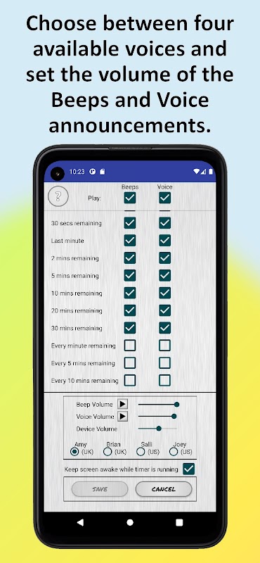 Eine Timer-App mit Sprachbenachrichtigungen – bleiben Sie informiert, ohne auf die Uhr zu schauen.