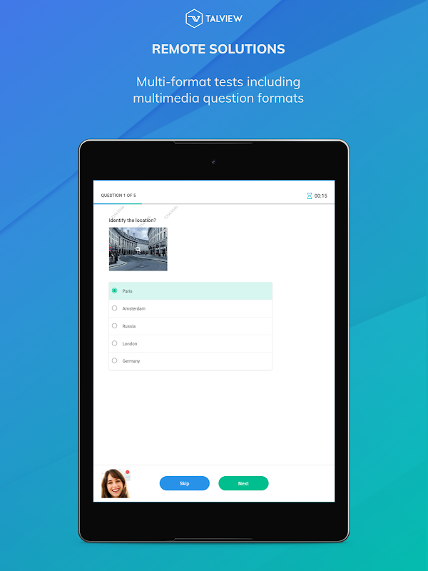 Tests in der Talview Candidate-App werden mit Talview Proview Proctoring überwacht, der einzigen Remote-Proctoring-Lösung, die auf allen iOS-Geräten verfügbar ist. Sie können jetzt bequem von zu Hause aus an Bewertungen und Interviews teilnehmen! Keine Last-Minute-Probleme mehr, den Veranstaltungsort zu erreichen oder lange Kilometer zurückzulegen, um zu einem Testzentrum zu gelangen.