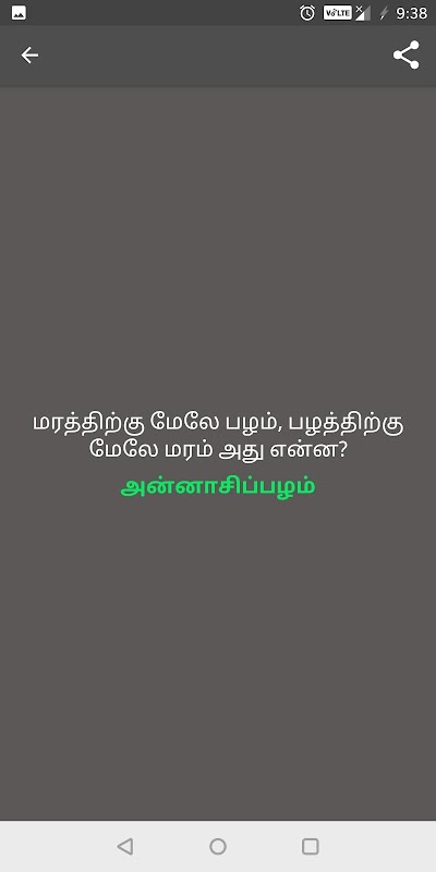 Tamil Riddles playing is a part of language development and also helps analytical thinking and creativity. Our Tamil Vidukathai app is one of the best app to improve tamil language for kids and brush your Tamil skill.