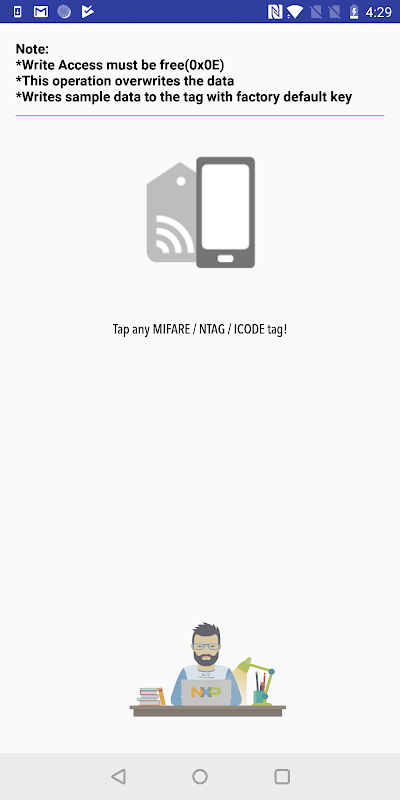 Diese Beispielanwendung wird bei www.mifare.net TapLinx SDK NXP verfügbar entwickelt mit -> Produkte -> Extras -> TapLinx. TapLinx ist Version von MIFARE SDK aktualisiert. Derzeit ist dieses SDK stellt APIs für die Kommunikation mit MIFARE (zum Beispiel Klassik, Ultralight, Plus, DESFire), NTAG (z NTAG 2xx, NTAG 4xx DNA) und ICODE (z SLI, DNA) Produkte.