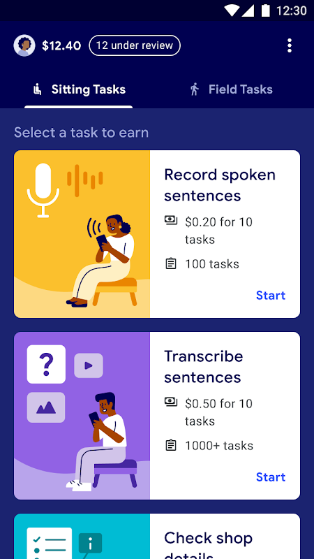 Erledigen Sie Aufgaben für Ihre Organisation mit der Task Mate-App. Beispiele für Aufgaben sind das Fotografieren eines Restaurants in der Nähe, das Beantworten von Umfragefragen oder das Helfen bei der Übersetzung von Sätzen aus dem Englischen in Ihre Landessprache.